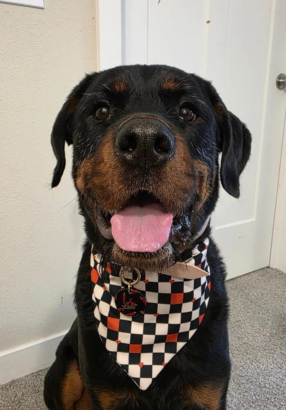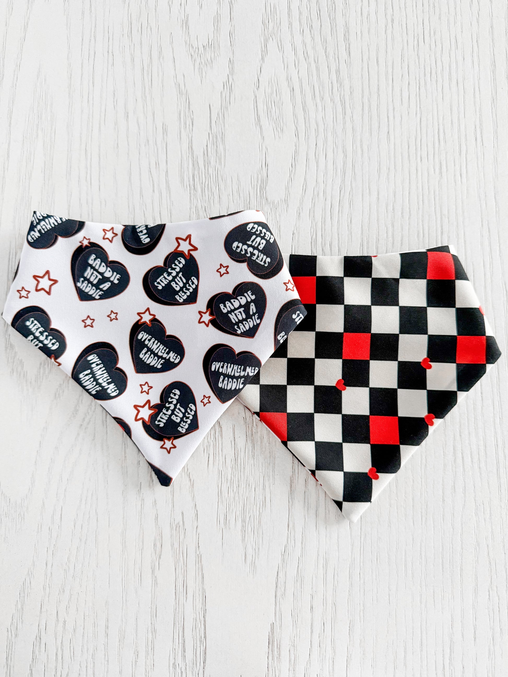 Reversible, snap on pet bandana that is handmade with love and biscuits!